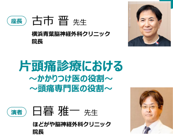 第一三共主催、「片頭痛診療の実臨床を考える~CareNet配信WEBセミナー~」がありました。第3弾になります。来月保土ヶ谷区医師会中心で周辺区エリア含め講演する予定です。今回は、横浜青葉脳神経外科クリニック院長 古市晋先生に座長いただき、深い議論ができました。