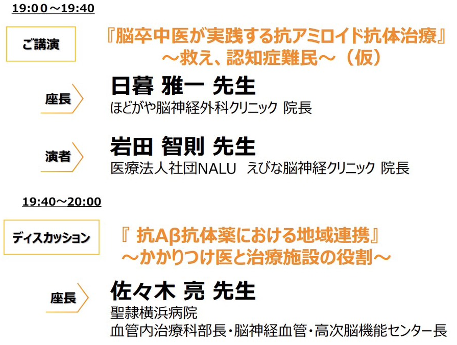 日本イーライリリー株式会社主催のアルツハイマーカンファレンスがありました。今回の役割者3人ともに脳卒中医でもあり、自己都合を排し、いつでも最優先で患者にあたることがあたりまえと考えています。同様の熱量で認知症患者さんに対応していきたいと思っています。