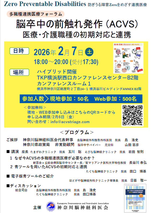 脳卒中の前触れ発作(ACVS)/神奈川脳神経科医会